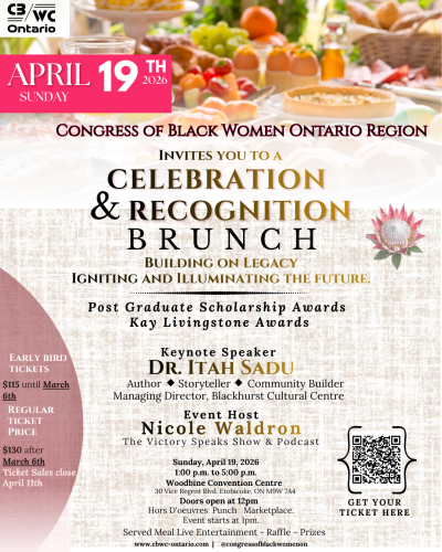 Please join the Congress of Black Women, Ontario Region at our Celebration and Recognition Brunch on Sunday, April 19, 2026 from 1:00pm to 5:00pm.