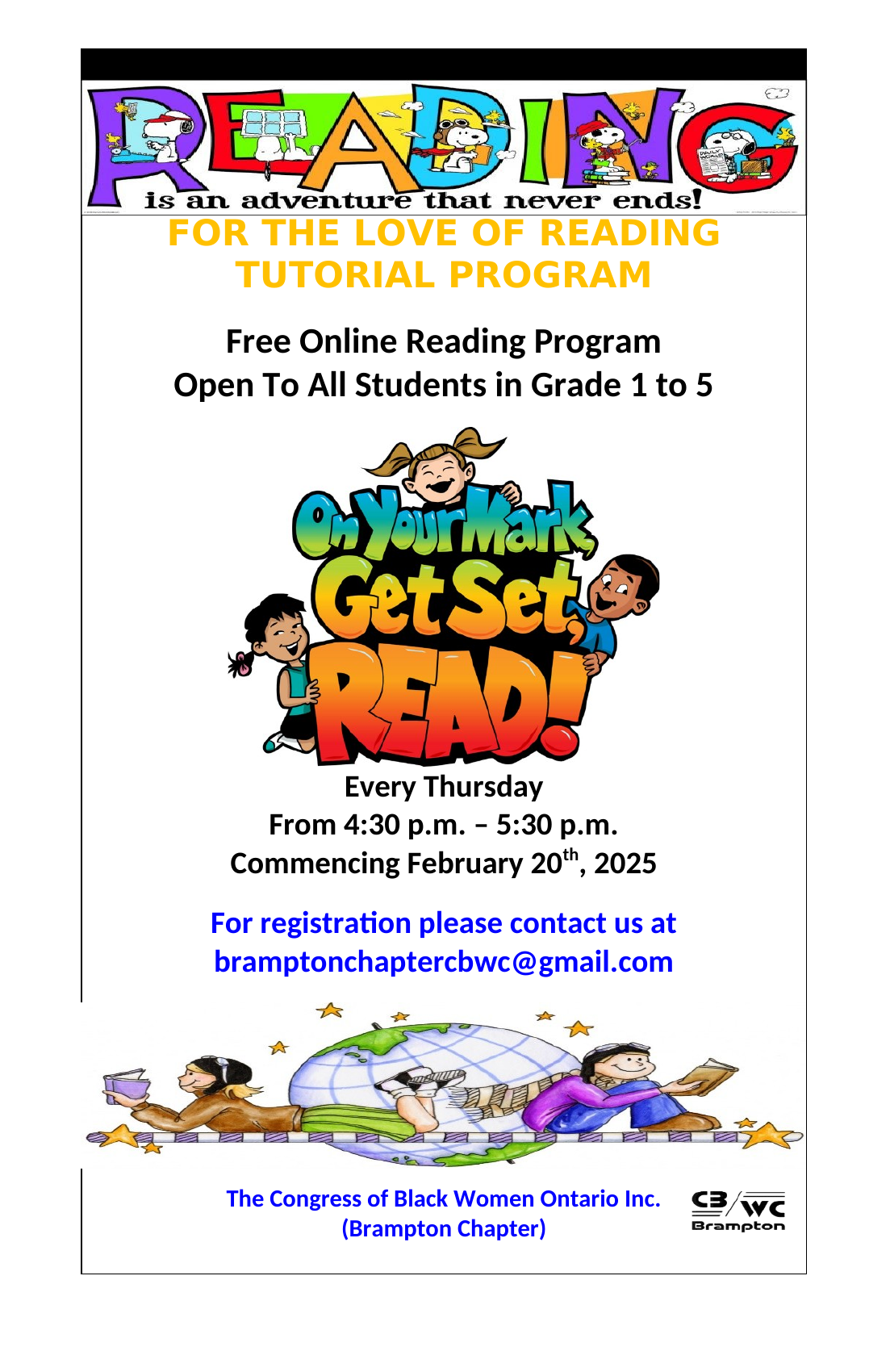 For the Love of Reading Tutorial Program Free Online Reading Program – Open to all Students in Grade 1 to 5. + Add to Google Calendar + iCal / Outlook export The event is finished. Date Feb 20 2025 Expired! Time 4:30 pm - 5:30 pm Share this event